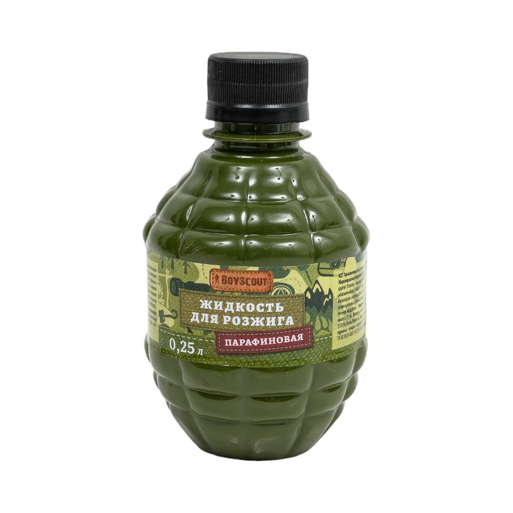 Жидкость для розжига BOYSCOUT 0.25 л парафиновая 61035 помогает быстро разжечь дрова, древесные угли или топливные брикеты. Их нужно полить жидкостью и через 1-2 минуты разжигать. Жидкость пригодится на даче, на рыбалке, во время отдыха на природе. Она не вспыхивает, разгорается равномерно, спокойным пламенем. Отсутствует запах гари. При использовании следует выполнять рекомендации, изложенные в инструкции.