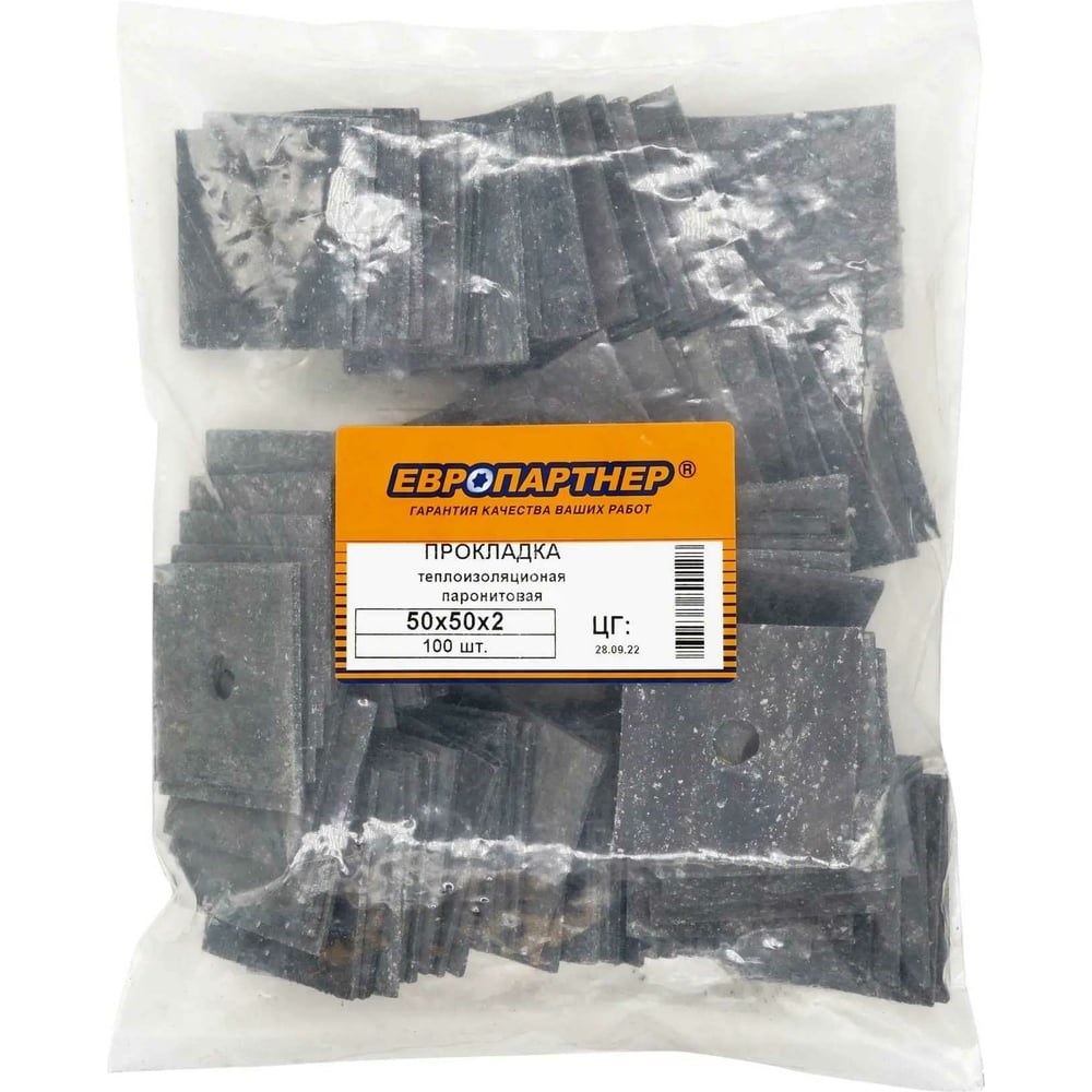 Паронитовая теплоизоляционная прокладка ЕВРОПАРТНЕР 50x50x2 мм, 100 шт 0204 D