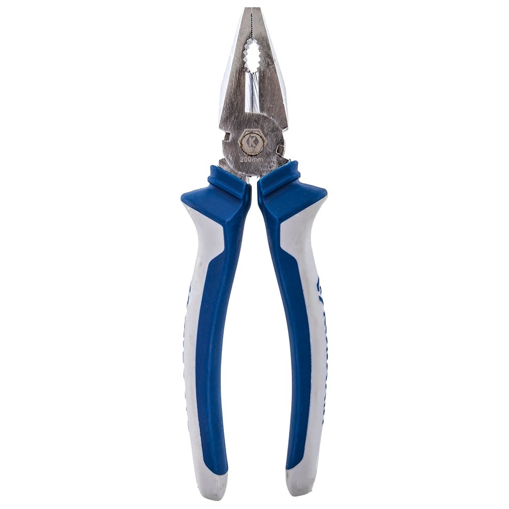 Пассатижи 200 мм CR-V КОБАЛЬТ 647-109 - ручной инструмент, используется для удержания и захвата различных предметов. Удобно сконструированная форма рукояток крепко и надежно лежит в ладони. Губки выполнены из хром-ванадиевой стали и закалены, за счет чего пассатижи выдерживают большие нагрузки. Рабочая часть оснащена режущими кромками для резки проволоки.