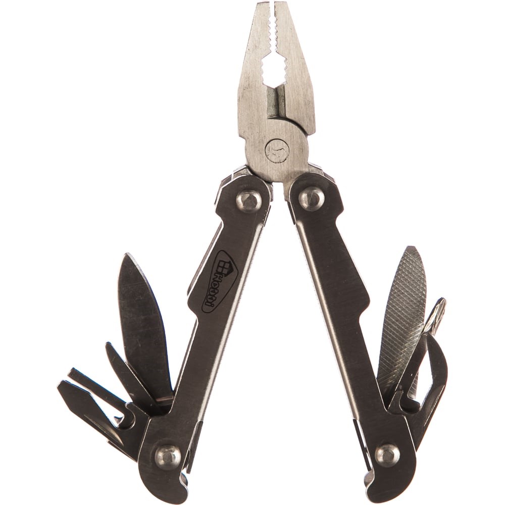 Пассатижи - трансформер РемоКолор 13 в 1 34-1-013 состоят из 13 элементов: плоскогубцев, кусачек, захвата круглых предметов, крестовой отвертки, консервного ножа, открывалки для бутылок, отверток шлицевых - средней и малой, пилки, шила, напильника и большого ножа. Корпус и лезвия изделия изготовлены из нержавеющей стали, а рабочие части выполнены из высококачественной инструментальной стали.