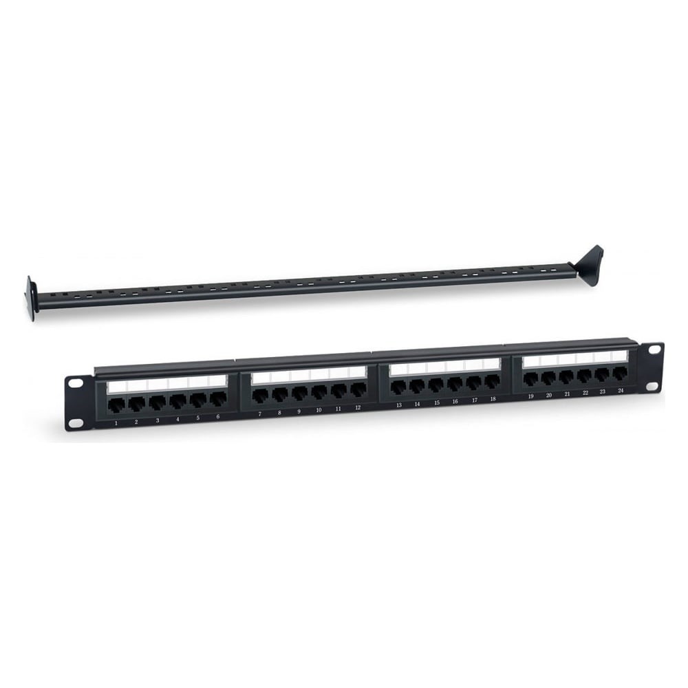 Патч-панель 19" WRline WR-PL-24-C5E-D (1U), 24 порта RJ-45, категория 5e, Dual IDC, с задним кабельным организатором, цвет черный 505208