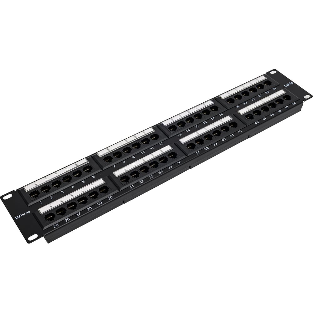 Патч-панель 19" WRline WR-PL-48-C5E-D (2U), 48 портов RJ-45, категория 5e, Dual IDC, с задним кабельным организатором, цвет черный 505209