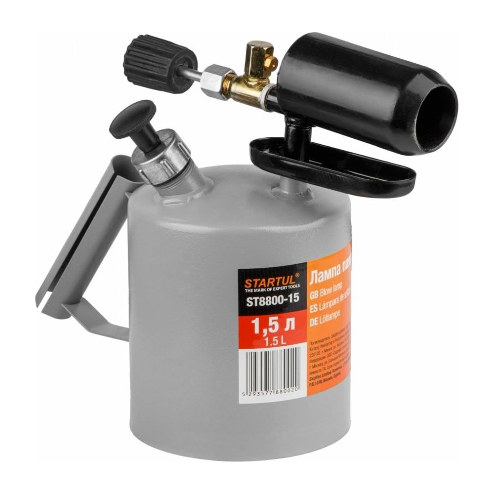 Лампа STARTUL паяльная ST8800-15 универсальна в использовании. Можно плавить и разогревать, устранять лед внутри труб. Инструмент оснащен баком для топлива - хватит на продолжительный период времени. Имеется регулировка подачи топлива для контроля выходной мощности.