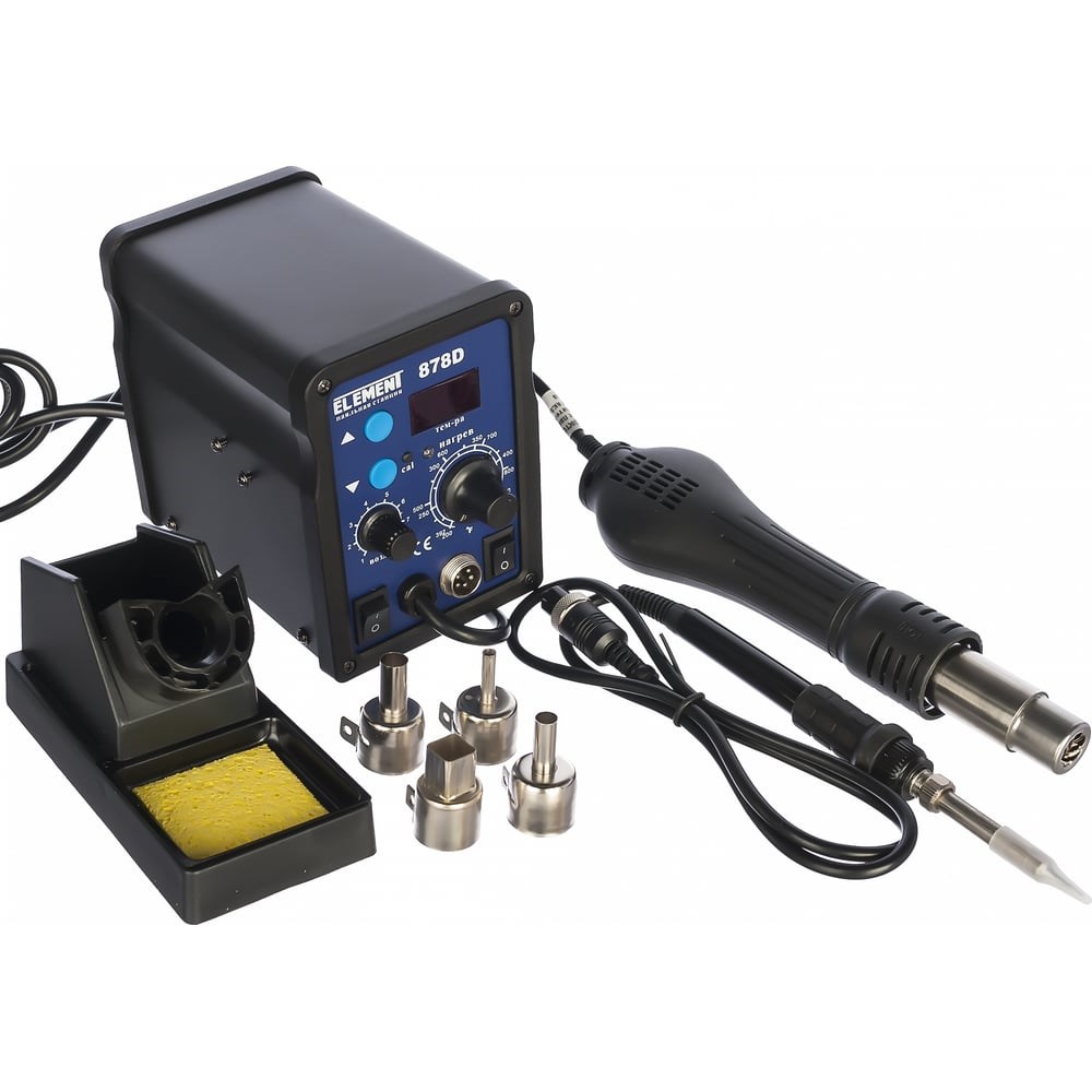 Паяльная станция ELEMENT 878D 15299 служит для удобного и безопасного проведения процесса пайки или демонтажа различных видов компонентов (в том числе чувствительных, в корпусах: SOIC, PLCC, QFP, BGA и т. д.). Аппарат выполнен в современном стиле, отличается небольшими размерами, за счет чего позволяет экономить рабочее пространство.