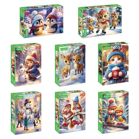 Пазл картонный "ЗИМНИЕ РАДОСТИ " 260 элементов АССОРТИ, 220х330 мм, HATBER
