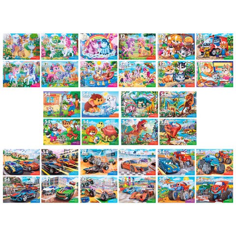 Комплект пазл состоит из 32 элементов, изготовленных из экологически безопасного и не расслаивающегося картона. Предназначен для самых маленьких, отлично помогает в формировании мелкой моторики малыша. Дизайны созданы художниками-мультипликаторами. Сюжет и персонажи картинки яркие и интересные, хорошо прорисованные.