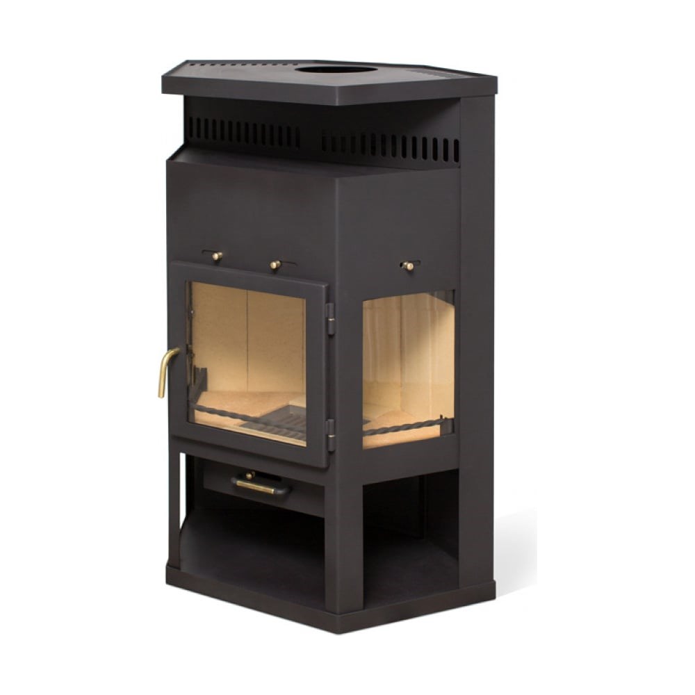 Повышенная мощность и весьма обширная камера сгорания. Оснащена выдвижным зольным ящиком и регулировкой подачи воздуха. Пристенно-угловая модель с универсальным подключением дымохода (заднее и верхнее). Идеально подходит для обогрева помещения площадью 55-110 м2. Максимальный размер поленьев до 70 см.