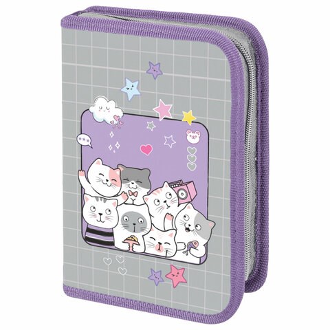 Пенал ПИФАГОР, 1 отделение, 2 откидные планки, полиэстер, 20х14 см, "Cats selfie", 273477