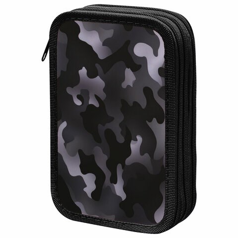 Пенал ПИФАГОР, 3 отделения, ламинированный картон, 19х11 см, "Black camo", 273489