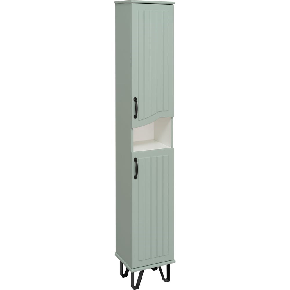 Пенал Runo Марсель 30 мята правый 00-00001221 напольный с двумя распашными дверками и открытой нишей посередине. В верхнем и нижнем отделениях по одной встроенной полке. Петли со встроенным доводчиком, ножки черные пластиковые -4шт, ручки черные -2шт. Корпус и фасады покрыты пленкой в цвете мята, что в сочетании с черной фурнитурой делают мебель стильной и оригинальной. Выпускается только в правом исполнении.