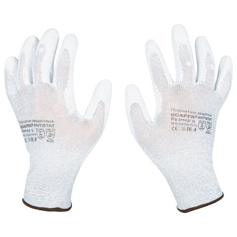 Антистатические нейлоновые перчатки серого цвета с вплетением карбоновых нитей и полиуретановым покрытием. Благодаря карбоновой нити перчатка имеет антистатические свойства, рассеивая электрический заряд. Тонкое полиуретановое покрытие одновременно очень прочное и чувствительное, а анатомическая форма перчатки снижает усталость рук при работе.