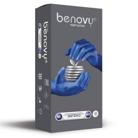 Перчатки латексные смотровые 25 пар (50 штук), размер 7-8, M (средний), синие, BENOVY High Risk