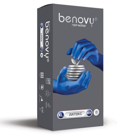 Перчатки латексные смотровые 25 пар (50 штук), размер 9-10, XL (очень большой), синие, BENOVY High Risk