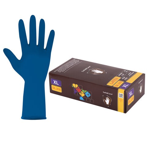 Перчатки латексные смотровые 25 пар (50 штук), размер 9-10, XL (очень большой), синие, SAFE&CARE High Risk DL/TL210