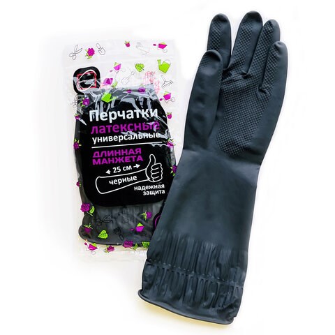Перчатки МНОГОРАЗОВЫЕ латексные ДЛИННАЯ МАНЖЕТА 25 см ЧЕРНЫЕ, размер 7-8, M (средний), вес 80 г, КП, 139595