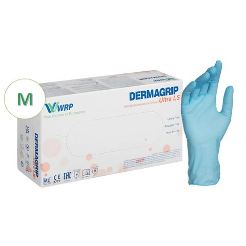 Перчатки нитриловые смотровые, 100 пар (200 штук), повышенная чувствительность, размер 7-8, M (средний), DERMAGRIP Ultra, D1102-27