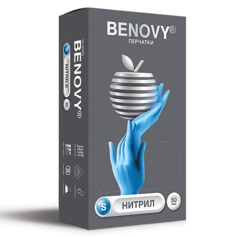 Перчатки нитриловые смотровые 50 пар (100 штук), размер 6-7, S (малый), BENOVY Nitrile Chlorinated