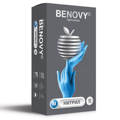 Перчатки нитриловые смотровые 50 пар (100 штук), размер 7-8, M (средний), BENOVY Nitrile Chlorinated