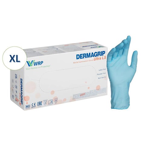 Перчатки нитриловые смотровые, 90 пар (180 штук), повышенная чувствительность, размер 9-10, XL (очень большой), DERMAGRIP Ultra, D1104-27