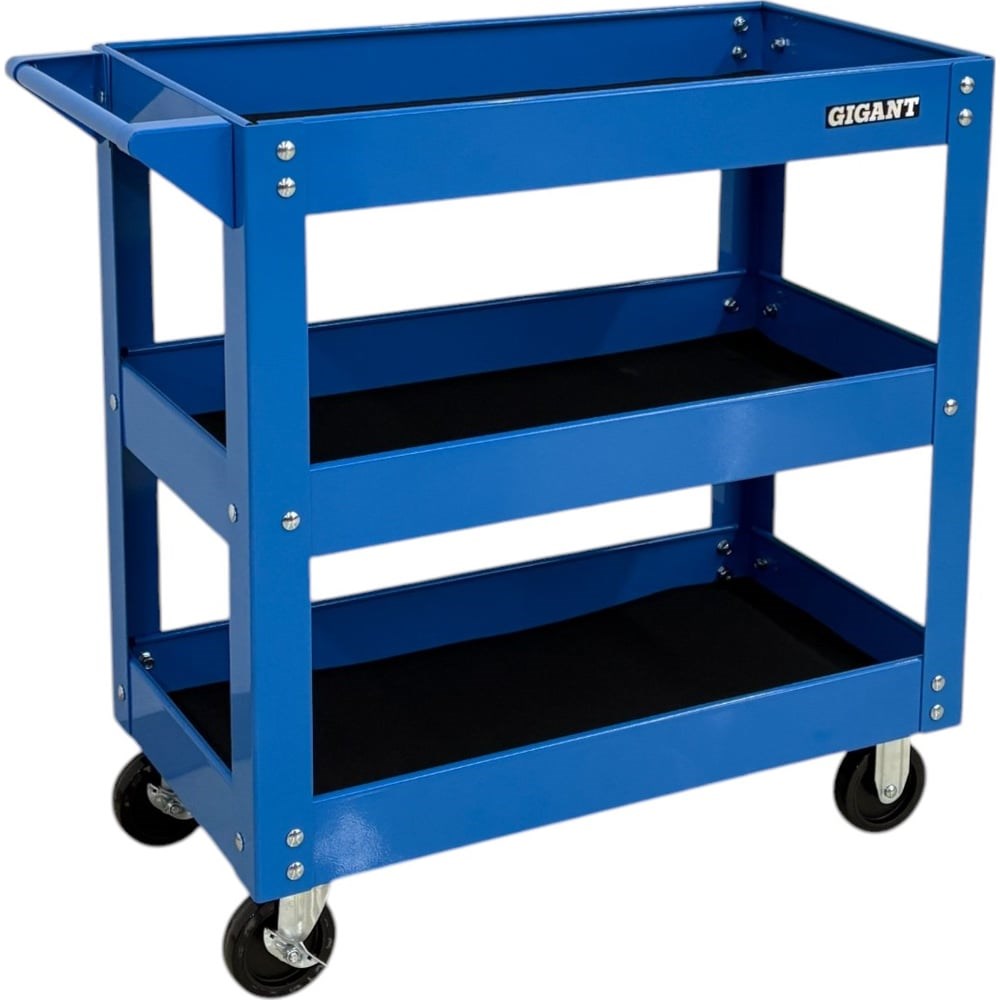 Инструментальная передвижная тележка Gigant с 3 полками GTTS-3 позволяет организовать рабочее место с максимальным удобством. Имеется ручка для передвижения тележки, которая так же может служить подвесным держателем. Каждая полка имеет углубление высотой 5,5 см для устойчивости предметов, лежащих на полках при движении тележки. Высота без колес 665 мм Высота с колесами 780 мм