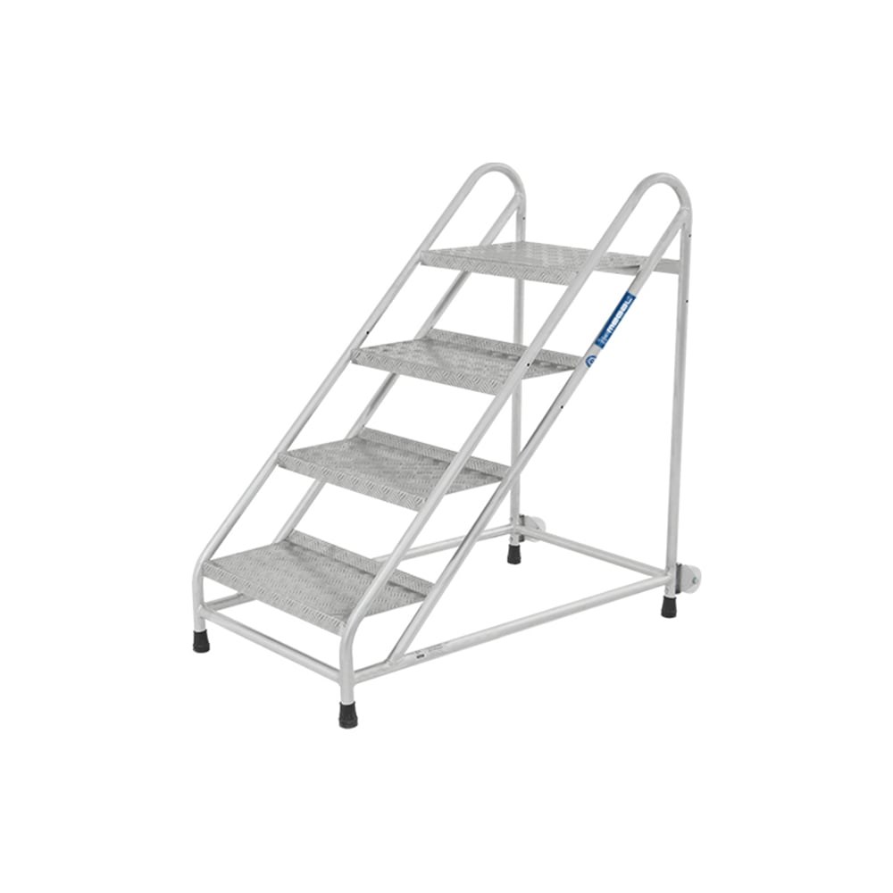 Передвижная монтажная подставка MEGAL (тип 2) 4 ступени 051004 применяется при проведении строительных и монтажных работ на небольшой высоте. Верхняя площадка размером 60х40 см позволяет комфортно разместиться. Ступени глубиной 29 см, выполненные из рифленого листового алюминия, имеют загнутую внутреннюю кромку, которая предотвращает проскальзывание ноги внутрь. А дополнительное боковое ограждение предотвращает соскальзывание ноги вбок. Ножки подставки укомплектованы резиновыми противоскользящими башмаками, что гарантирует устойчивость на поверхности. Для удобства перемещения по рабочей территории модель оснащена комплектом колес.