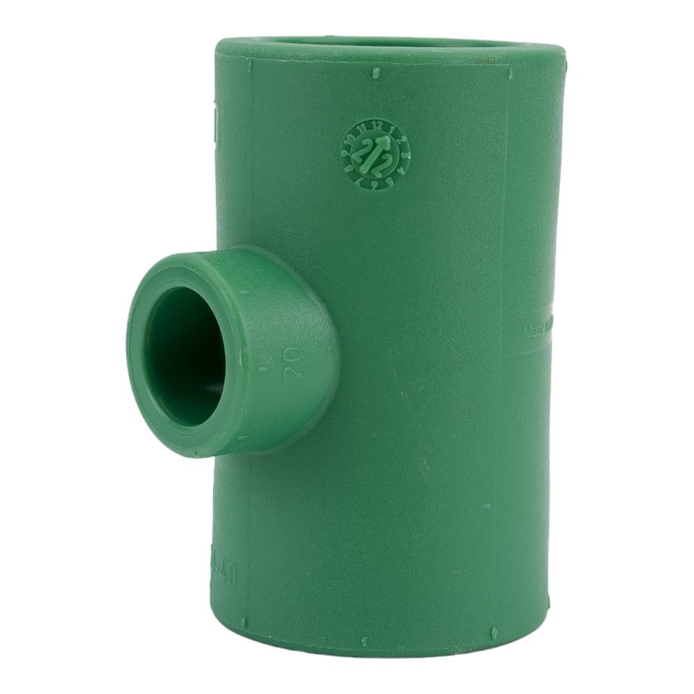 Переходной тройник Banninger полипропиленовый, зеленый, 40x20x40 мм 7521090611 - ППР фитинг для соединения трёх труб различного диаметра. Продукция полностью сертифицирована.