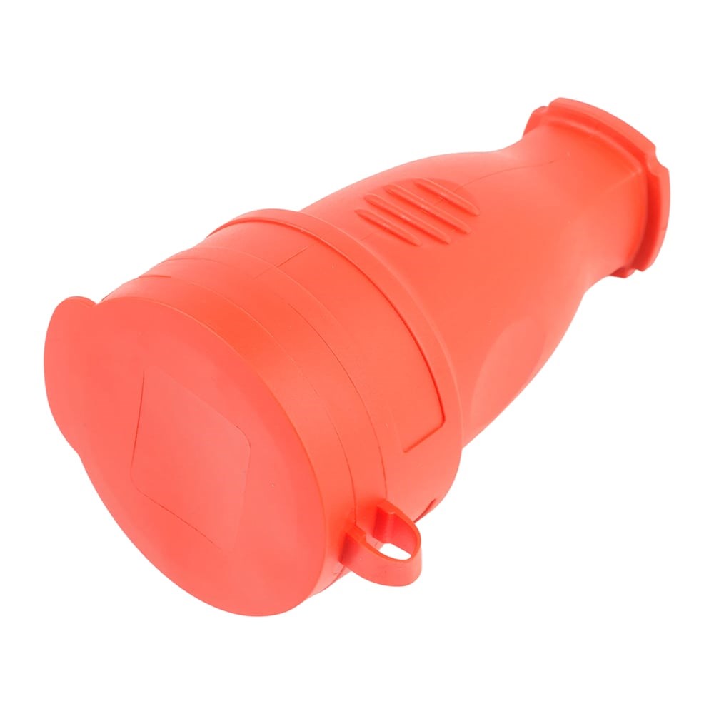 Переносная одноместная розетка STEKKER с/з с крышкой каучук 230В 16А IP44 красный RST16-21-44 39195