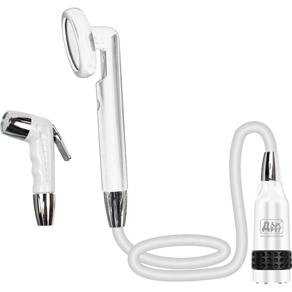 Переносной USB душ – это комплексное решение вопросов гигиены и санитарии в путешествиях, в кемпинге, на рыбалке или охоте, на даче, а также в городской квартире в период отключения горячей воды, строительства и ремонтных работ. В состав модели входит: широкая и узкая лейки, гибкий шланг длиной 180 см, погружная помпа, всё для крепления, а также сумка-чехол для хранения и транспортировки. Если раньше во время выезда на природу можно было только мечтать о душе, то теперь Друг готов воплотить ваши мечты. Душ создаёт напор как дома Кнопка подачи воды расположена прямо на лейке Время работы на одной зарядке - до 60 минут Можно заряжать от переносного Power Bank Лёгкий Компактный