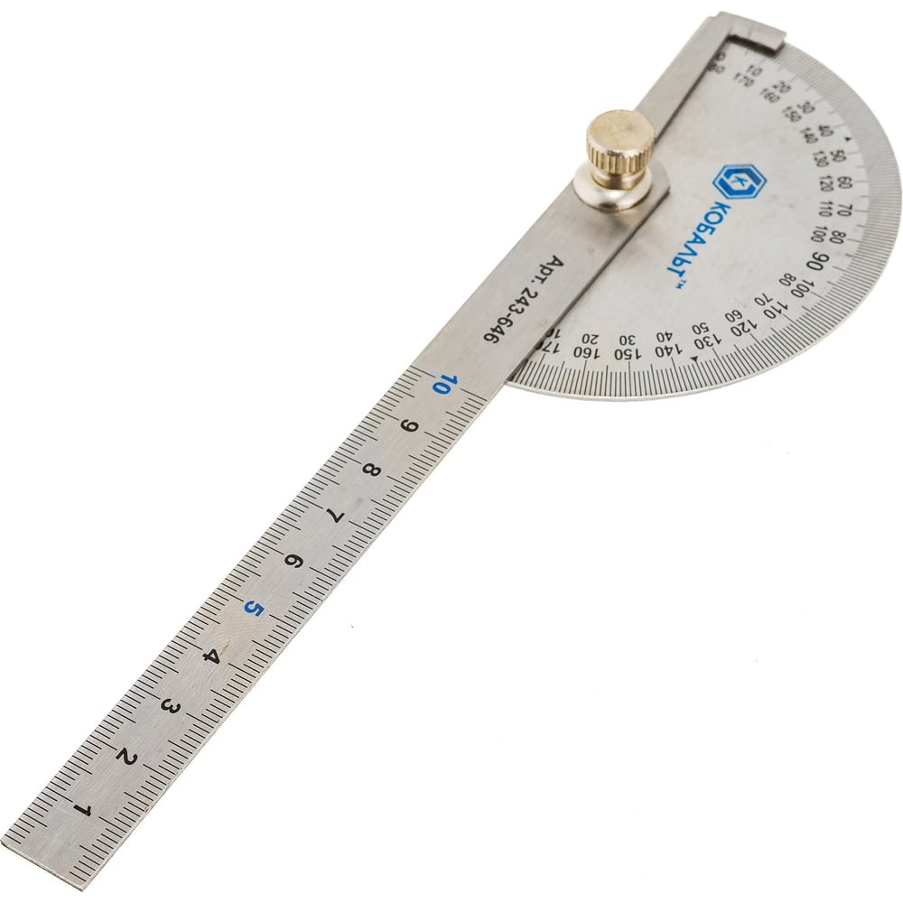 Переставной угломер с транспортиром 150мм КОБАЛЬТ 243-646 - удобный в работе инструмент "2 в 1", который позволяет производить линейные размеры, разметку, и проверку углов. Широко используется в сфере сборочных работ.