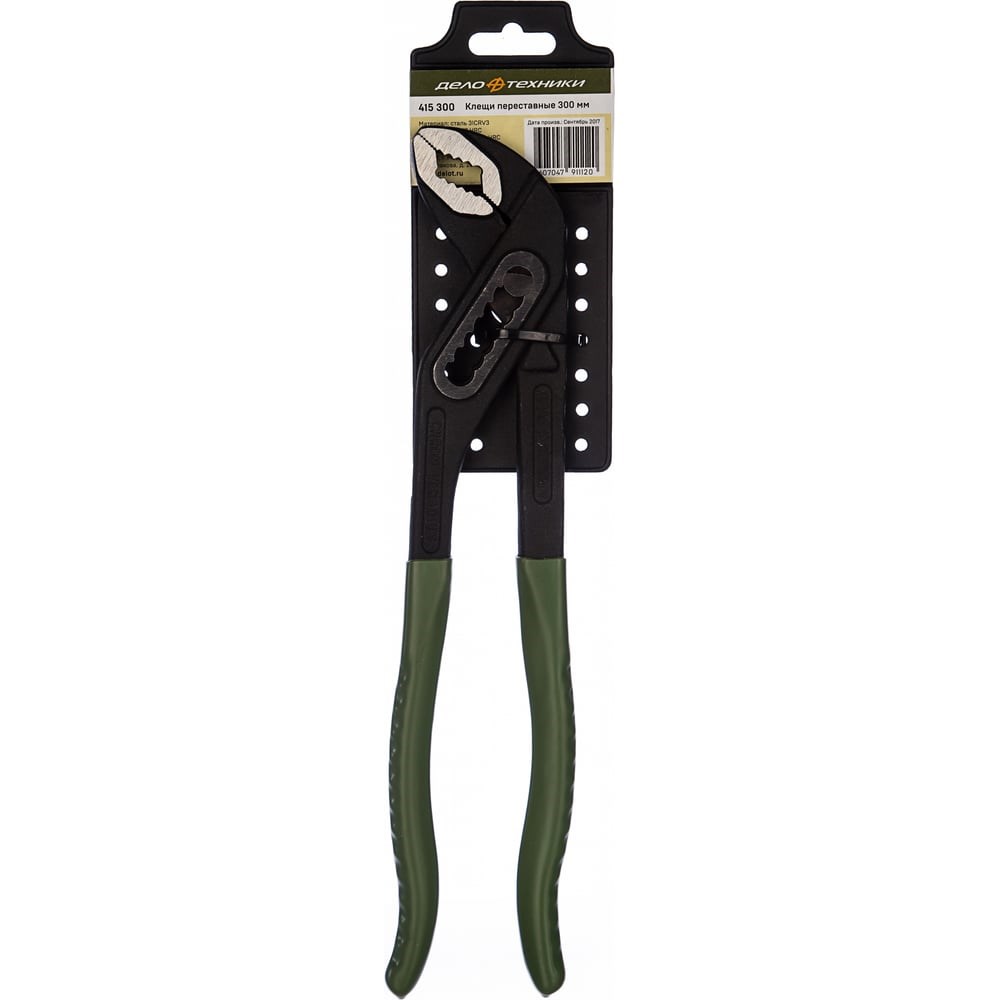 Переставные клещи 300 мм ДТ/40/10 Дело Техники 415300 служат для проведения ремонтных и демонтажных работ. Переставной механизм удобен для регулировки губок по размеру детали. Рабочая часть изготовлена из прочной стали и имеет покрытие из черного фосфата. Инструмент обладает стойкостью к возникновению коррозии. Рукоятки имеют ПВХ-покрытие, которое обеспечивает надежный захват и комфортное испльзование инструмента без проскальзывания..