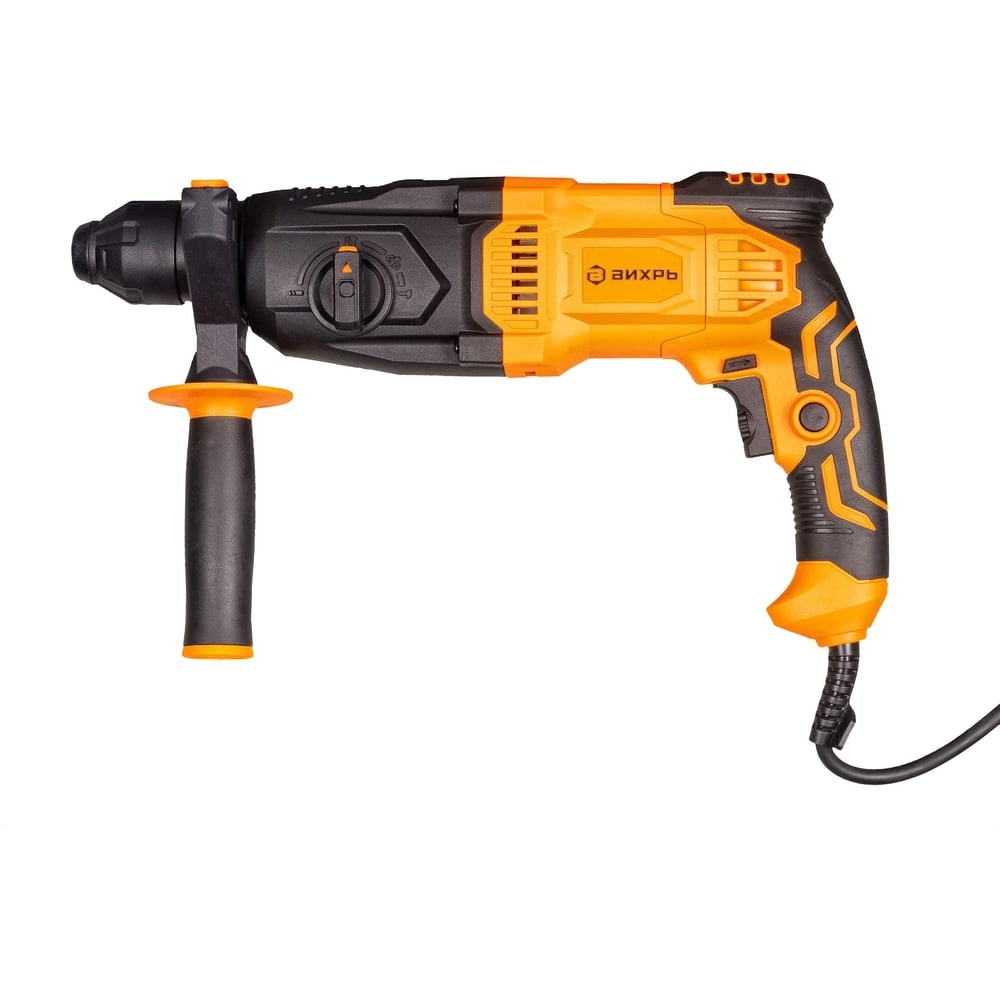 Перфоратор Вихрь П-5А-1000 – бытовой электроинструмент для засверливания разных стройматериалов, бурения и штробления кабель-каналов в камне, кирпиче, бетонах повышенной плотности, а также для демонтажных работ по разрушению строительных конструкций.Электропневматический ударный механизм генерирует удар в 5 Дж. Двигатель мощностью 1000 Вт расположен в корпусе горизонтально. Перфоратор ударопрочный, снабжен противоскользящими накладками и защищен от проникновения пыли в рабочие части механизма. Патрон подходит для хвостовиков типа SDS-plus.Вихрь П-5А-1000 способен работать в 3 режимах, они настраиваются двумя переключателями. Функции сверления и удара могут быть использованы как вместе, так и независимо друг от друга. Нажатие на кнопку включения регулирует скорость вращательных и возвратно-поступательных движений. Перфоратор развивает до 1100 об/мин в режиме дрели и совершает до 4900 уд/мин при выборе ударной функции. В инструменте предусмотрены защита от заклинивания, реверс, настройка углового положения и ограничитель глубины сверления.