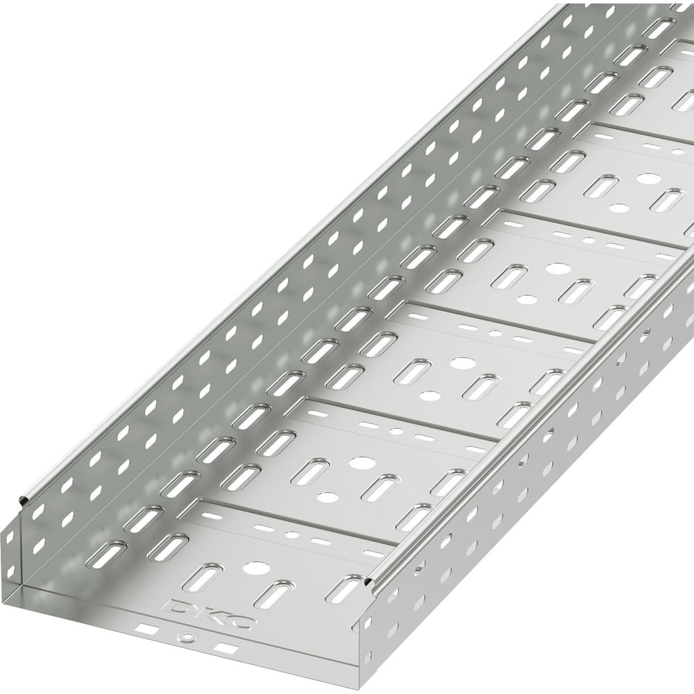 Перфорированные листовые лотки ДКС применяются для прокладки кабеля как в помещении, так и на открытом воздухе. Лотки отличаются высокой несущей способностью – подформовка, производимая при производстве этой продукции, создает дополнительное ребро жесткости, что увеличивает несущую способность системы до 54%. Перфорация сокращает вес конструкции. В лотках имеются отверстия для отвода кабеля. Степень пыле- и влагозащиты перфорированных лотков – IP 10 при использовании крышек, входящих в состав системы. Метод соединения "мама-папа" применяемый для системы, существенно сокращает время монтажа и создает непрерывный контур. Конструктив листовых лотков ДКС предупреждает повреждение кабеля при прокладке. Высота лотка – 100 мм, ширина – 300 мм, длина – 2000 мм, толщина - 0,7 мм. Лотки в специальном исполнении "Горячий цинк" отличаются повышенной стойкостью к коррозии и воздействию агрессивных сред.