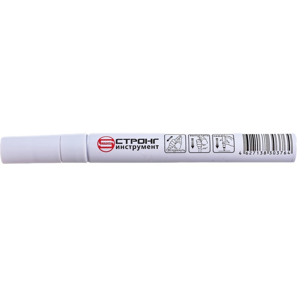 Strong Маркер перманентный белый СTМ-60108001 предназначен для работы на металлических, деревянных, стеклянных и пластиковых поверхностях. Перед нанесением маркировки поверхность обязательно очистить от пыли и обезжирить! Strong Маркер перманентный белый СTМ-60108001 ширина пишущего наконечника: 1,5 - 3 мм. Материал корпуса: Металл. Основа: Масляная. Цвет: Белый. Назначение: Используется для нанесения различных разметок на поверхностях материалов
