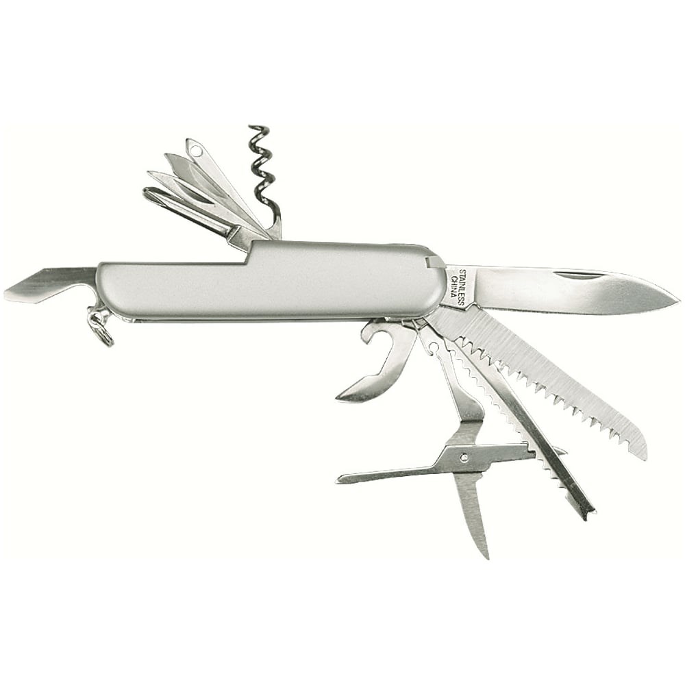 Перочинный нож TOPEX 11 лезвий 98Z116 изготовлен из прочной нержавеющей стали, гарантирует долгий срок службы. Практичен и универсален в использовании, в наборе наконечники широкого применения, включающие в себя: нож, ножницы, пилу, скребок, открывалку для бутылок, открывалку для консервных банок, штопор, шило, гвоздодер, отвертку PH, напильник За счет компактности его всегда можно носить с собой.