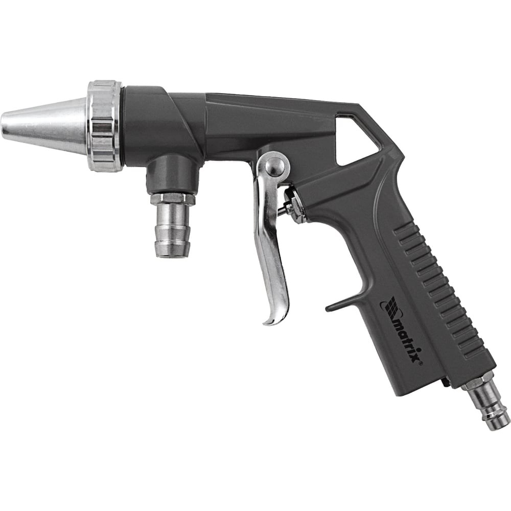 Пескоструйный пистолет со шлангом MATRIX 57328 предназначен для очистки поверхности от грязи, ржавчины, краски, стойких загрязнений. Для работы применяется промытый кварцевый песок или специальная абразивная смесь. Диаметр сопла составляет 6 мм.