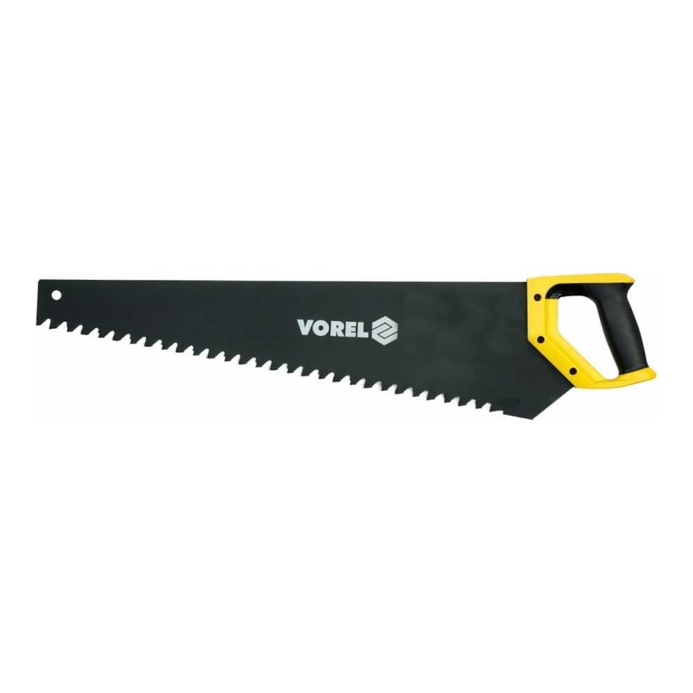 Пила по газобетону, твердосплавный зуб VOREL 600мм 34 зуб. 28012 - ручной инструмент с полотном из пружинной стали. Изделие служит для распила блоков из газобетона. Режущая часть инструмента выполнена из пружинной высокоуглеродистой стали, которая обеспечивает прочность и гибкость во время рабочего процесса. Рукоятка из двухкомпонентного материала обеспечивает надежность и удобство работы