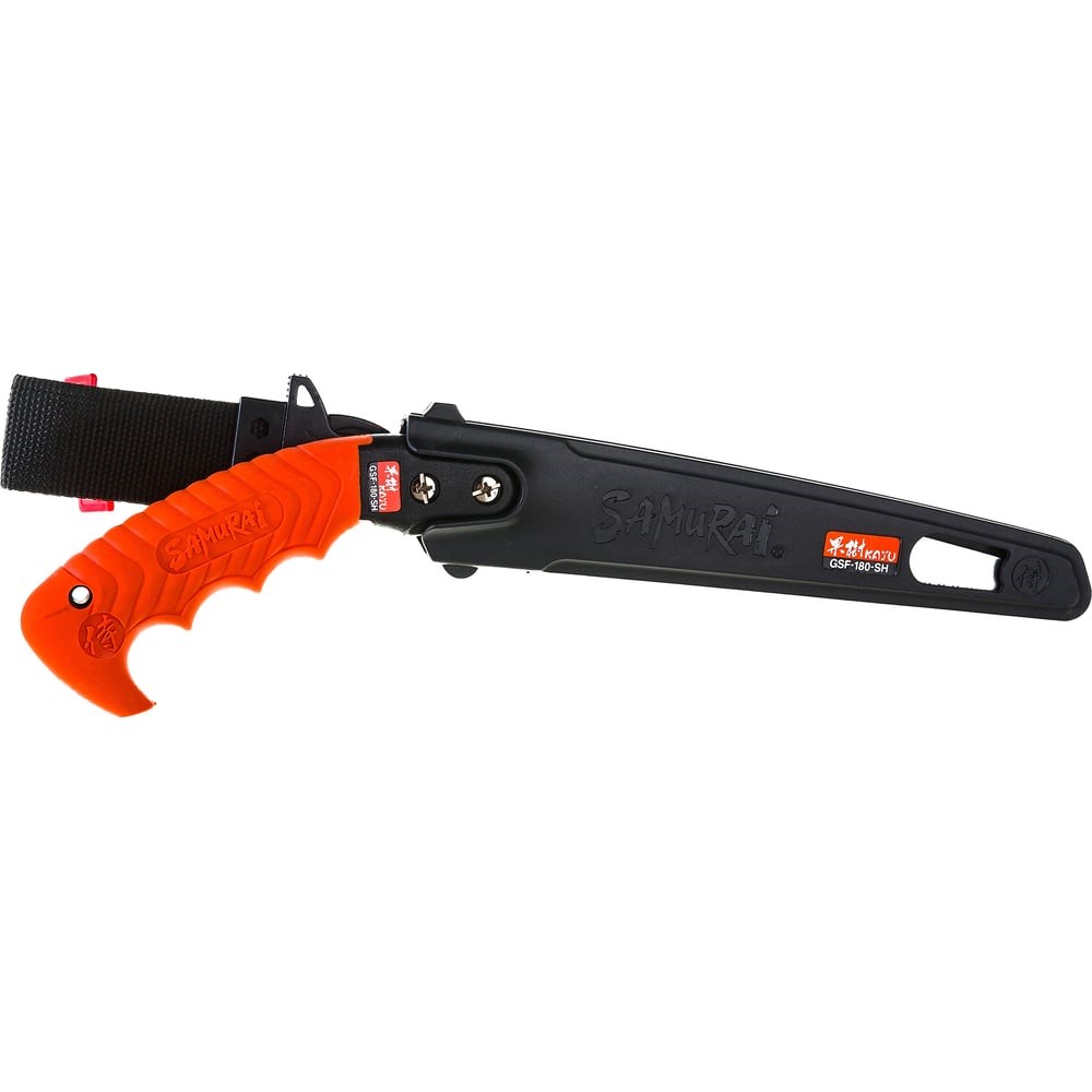 Пила с прямым полотном в чехле, с поясным креплением SAMURAI GSF-180-SH используется для спила кустарников, небольших деревьев, аккуратной обрезки ветвей, в т.ч. мелких. Подходит для распила ПВХ труб и сухой древесины, может применяться в работе с хрупкими и гибкими материалами. Отличается износоустойчивостью, эргономичностью, обладает длительным ресурсом работы. Зауженное трапецевидное полотно в сочетании с закаленными зубьями позволяет работать аккуратно и быстро, не прилагая чрезмерных усилий. Зубья заточены в трех плоскостях, закалены током и хромированы для наибольшей прочности и остроты. В комплекте поставляется защитный чехол, обеспечивающий безопасное хранение и транспортировку изделия.