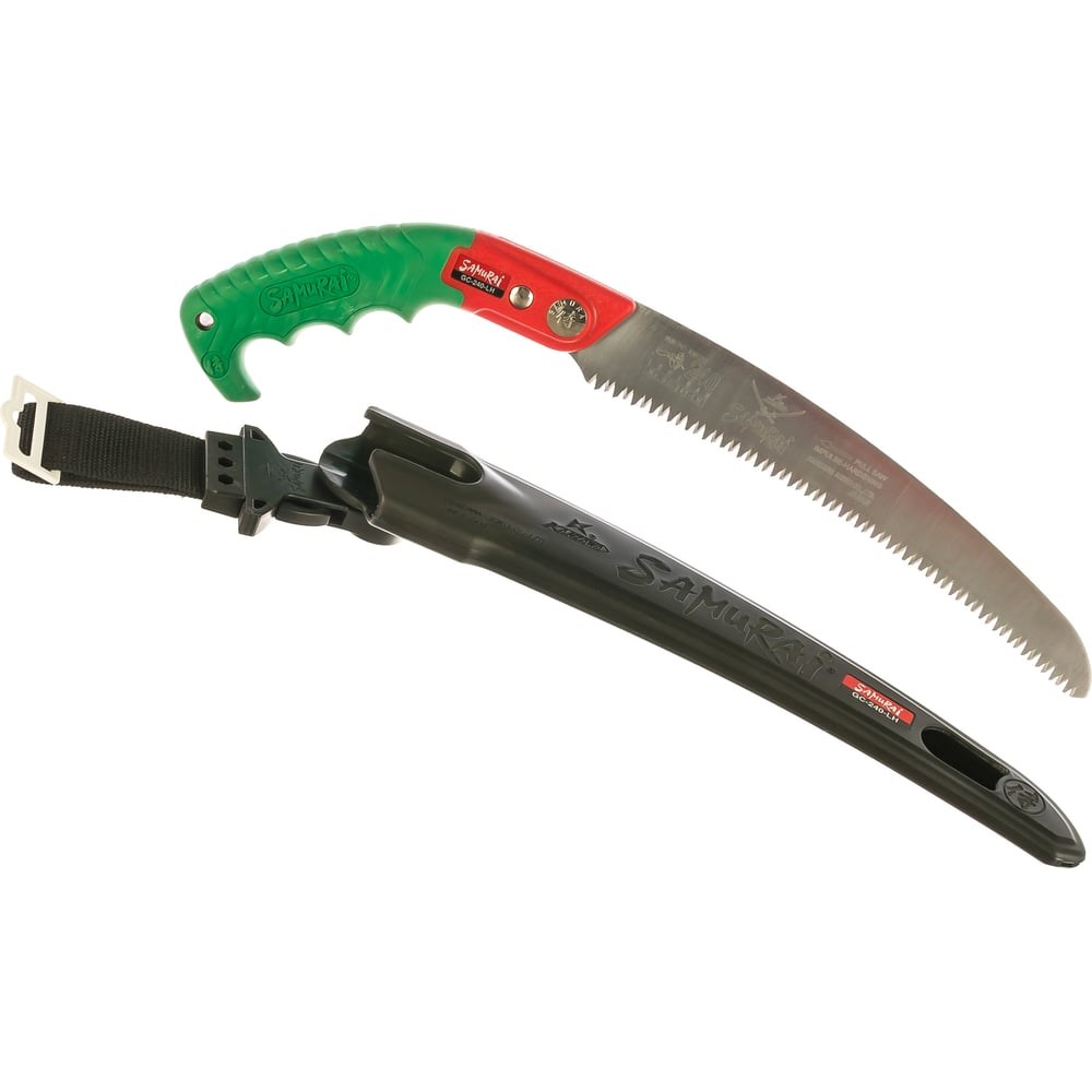 Пила с изогнутым полотном в чехле, с поясным креплением SAMURAI GC-240-LH — надежный ручной инструмент для ухода за садовыми деревьями, кустарниками. Подходит для удаления крупных веток, распиливания сухой древесины и небольших деревьев, обрезки ветвей и бережного удаления мелких веток. Зубья особым образом заточены в трех плоскостях и закалены, что позволяет осуществлять качественный рез на себя, ускорить процесс резки и сэкономить усилия пользователя. Инструмент отлично подходит для работы выше уровня плеча. Пила поставляется в комплекте с защитным кожухом, оснащенным поясным креплением, для удобного и безопасного ношения, хранения, транспортировки. Шаг зубьев - 4 мм.