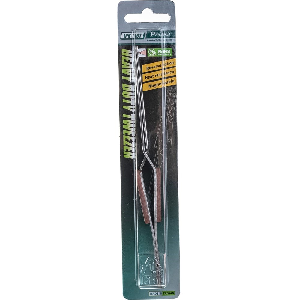 Пинцет ProsKit 1PK-118T 00154172 имеет обратное действие и может использоваться в виде зажима. Изделие оснащается стекловолоконными накладками для простоты эксплуатации. Наличие магнитных свойств пригодится при работе с мелкими металлическими деталями.
