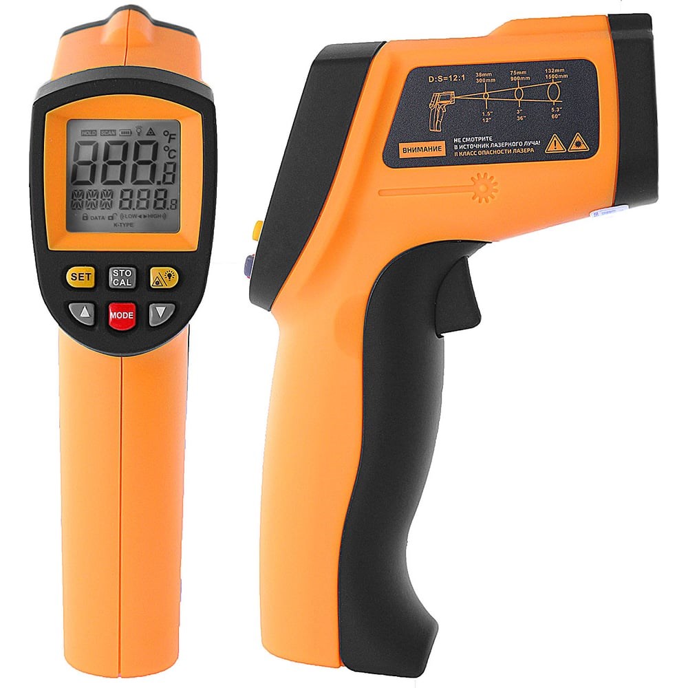 Пирометр предназначен для быстрого измерения температуры поверхности различных предметов в диапазоне от -50 до +700 градусов. Лазерный целеуказатель обеспечивает точное наведение на цель. Модель отличается эргономичным дизайном и имеет ЖК-дисплей с интегрированной подсветкой. Прибор автоматически выключается при длительном бездействии, благодаря чему уровень энергопотребления значительно понижается.