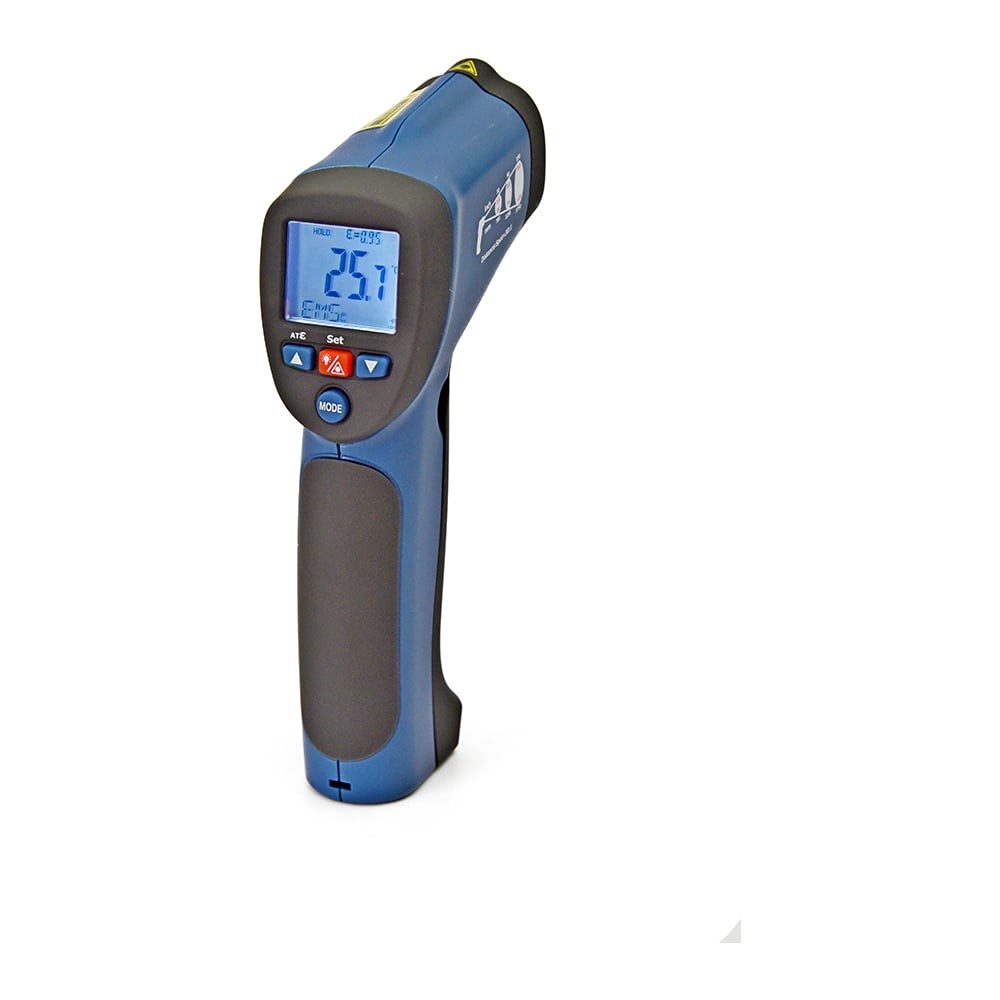 Пирометр СЕМ DT-8835 481554 позволяет измерять температуру от -50 до +1370 градусов термопарой и бесконтактно - от -50 до +1050 градусов. В случае перегрузки на экране прибора отображается символ OL. Подсветка дисплея и лазерный указатель делают измерительный инструмент удобным в работе. Есть возможность фиксировать показания прибора. Время отклика оборудования не превышает 1 секунды. Модель работает в спектральном диапазоне от 8 до 14 микрон.
