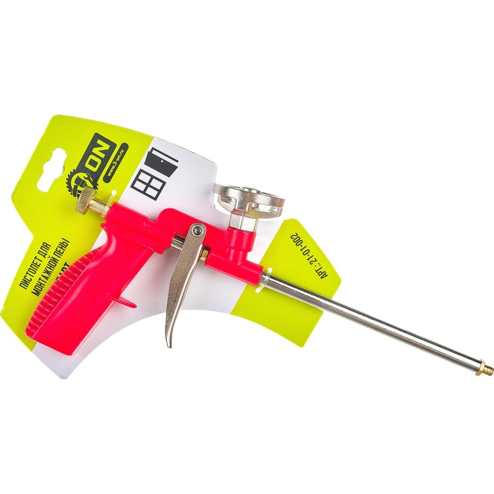Пистолет для монтажной пены ON СТАНДАРТ 21-01-002 используется для нанесения монтажной пены при монтаже дверей, окон и других строительных конструкций. Регулировочный винт позволяет изменять скорость потока пены и точно дозировать материал. Пистолет имеет прочный корпус и удобную рукоятку. Удлиненный металлический ствол дает возможность работать даже в труднодоступных местах.