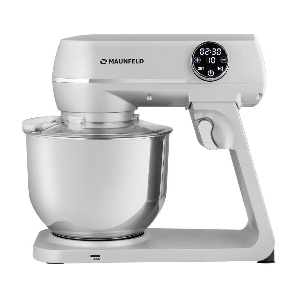 Инновационный планетарный миксер органично сочетает в себе дизайн и функциональность. Сенсорное управление. Десять скоростей, благодаря которым пользователь может легко регулировать мощность работы миксера, выбрав идеально подходящую скорость. А таймер с обратным отсчетом сделает работу с миксером еще удобнее, автоматизировав ее. Низкий уровень шума и вибрации. В устройстве сочетается тонко продуманная конструкция и высокого качества материалы, что обеспечивает минимум шума и вибрации при работе миксера. В комплекте предусмотрены 3 насадки: венчик для взбивания, который поможет создать вкуснейшие кондитерские шедевры (подойдет для взбивания белков, масла, крема, суфле); насадка для перемешивания, благодаря которой можно легко и быстро приготовить великолепное тесто для бисквитов и кексов; крюк, с помощью которого можно вымесить не только тесто, но и фарш. Чаша большой вместимости. Миксер оборудован вместительной чашей объемом 6.5 литров, а надежное крепление к основанию обеспечит высокую безопасность при работе с устройством. Дополнительный комфорт гарантирует входящий в комплект съемный обод для защиты от брызг с желобом для добавления ингредиентов. Планетарная система смешивания. Одновременное движение насадки вокруг своей оси и по внутреннему объему чаши поможет создать идеальную смесь для задуманного блюда.