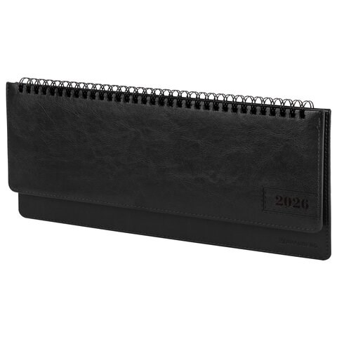 Планинг датированный 2026 305х140 мм BRAUBERG "Imperial", под кожу, черный, 117229