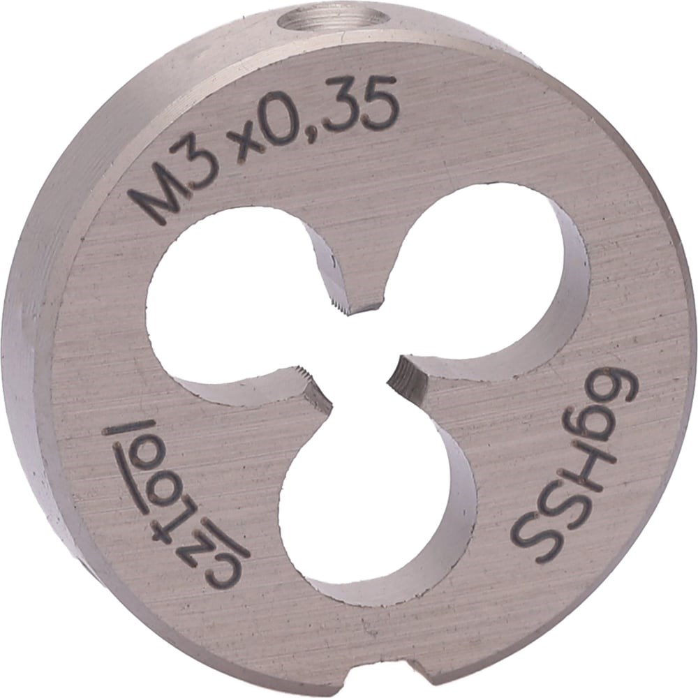 Плашка Bucovice Tools M 3 Шаг 0.35 HSS 20x5мм 240031, предназначена для создания метрической резьбы, с углом профиля 60 градусов. Изготовлена из высококачественной быстрорежущей стали HSS, которая гарантирует прочность и износостойкость. Подходит для обработки заготовок, выполненных из стали, чугуна, алюминия, меди, бронзы, цинка, с пределом прочности до 800MPa. Стандарт: DIN EN 22568 (DIN 223) Шаг, P: 0.35мм Режущие кромки, s: 3шт Толщина плашки, h: 5мм Диаметр под резьбу: 2.94мм Угол резьбы: 60 град. Допуск: 6g Форма захода: 1.5P Резьба: ISO DIN 13