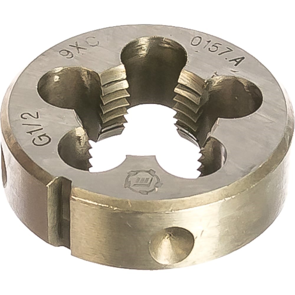 Плашка, трубная цилиндрическая G 1/2 дюйма 9ХС ТМ Туламаш 57992 обеспечивает нарезание качественной наружной резьбы дюймового формата. Наличие нескольких зон для отвода стружки упрощает работу с металлом и исключает закусывание в процессе резки.