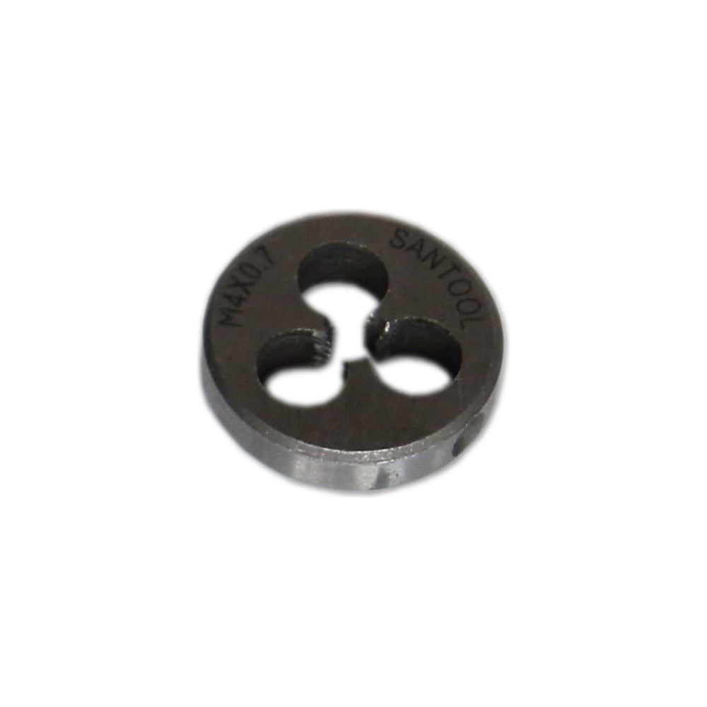 Плашка М4x0,7 d-20мм SANTOOL 032110-004-070 изготовлена из инструментальной стали, отличается прочностью и надежностью. Изделие используется в слесарном деле, а также для нарезания наружной резьбы при помощи плашкодержателя либо воротка.