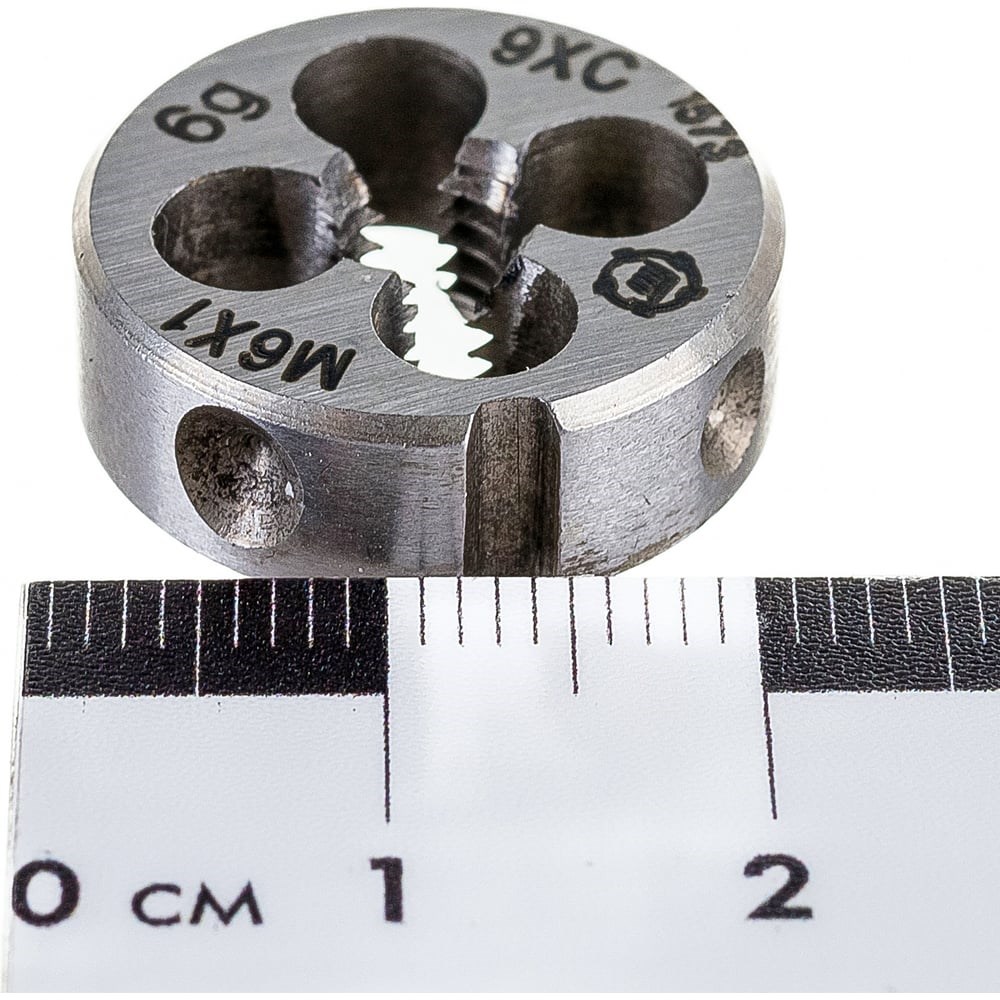 Плашка М 6 х1 9ХС ТМ Туламаш 57875 - надежный и качественный инструмент, который способен быстро и эффективно нарезать наружную резьбу. Изделие подходит для правосторонней резьбы. Высокоуглеродистая легированная сталь.
