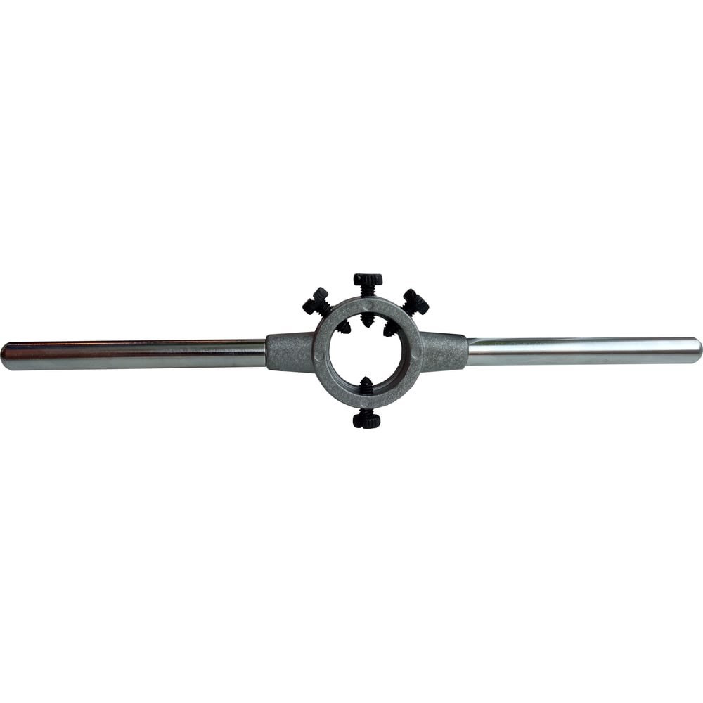 Плашкодержатель ФТ 20 (М4,5-М6) 186601 предназначен для нарезания внешних резьб плашками. Плашка зажимается в держателе специальными винтами. Съёмные ручки позволяют работать в труднодоступных местах и углах. Выполнен путём литья цинкового сплава под давлением.