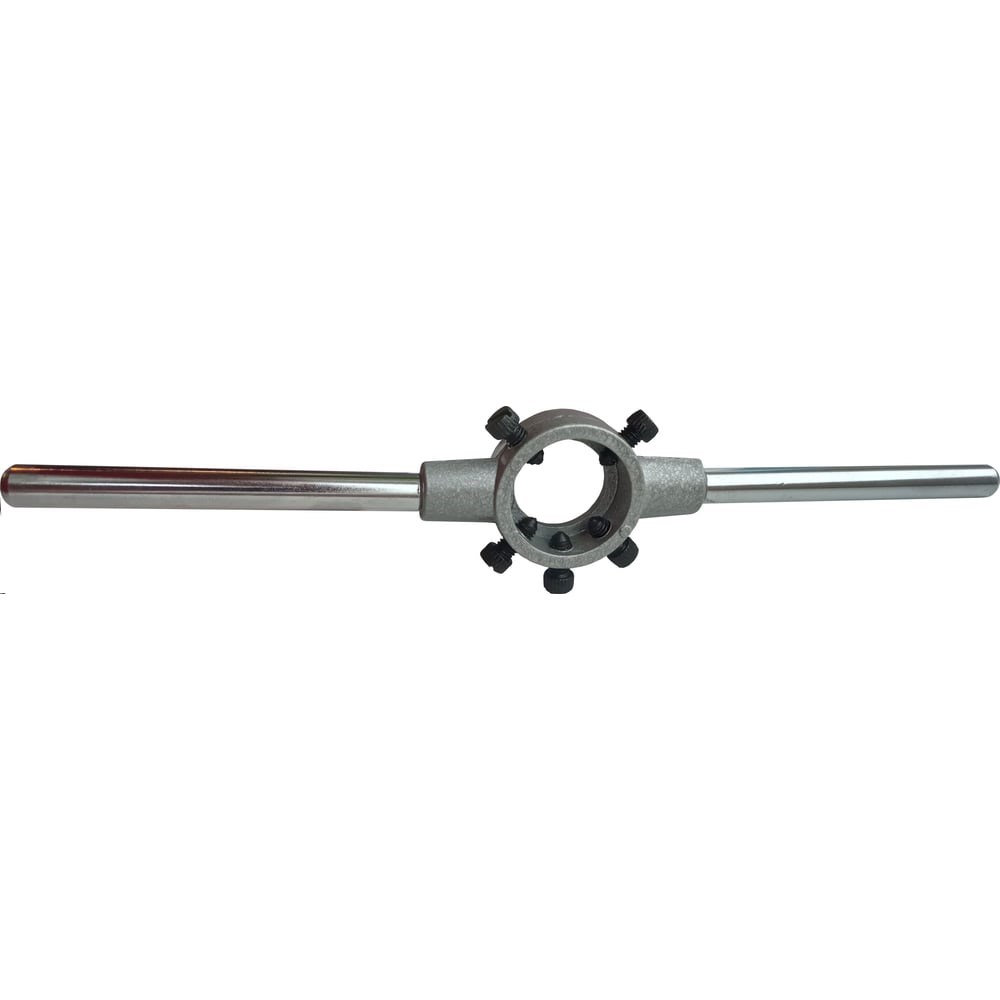 Плашкодержатель ФТ 25 (М7-М9) 186602 предназначен для нарезания внешних резьб плашками. Плашка зажимается в держателе специальными винтами. Съёмные ручки позволяют работать в труднодоступных местах и углах. Выполнен путём литья цинкового сплава под давлением. Общая длина 212 мм.